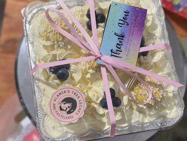 Each Tres Leches cake is beautifully decorated with a modern, stylish design, offering a visually stunning and delicious experience that blends tradition with modern flair.